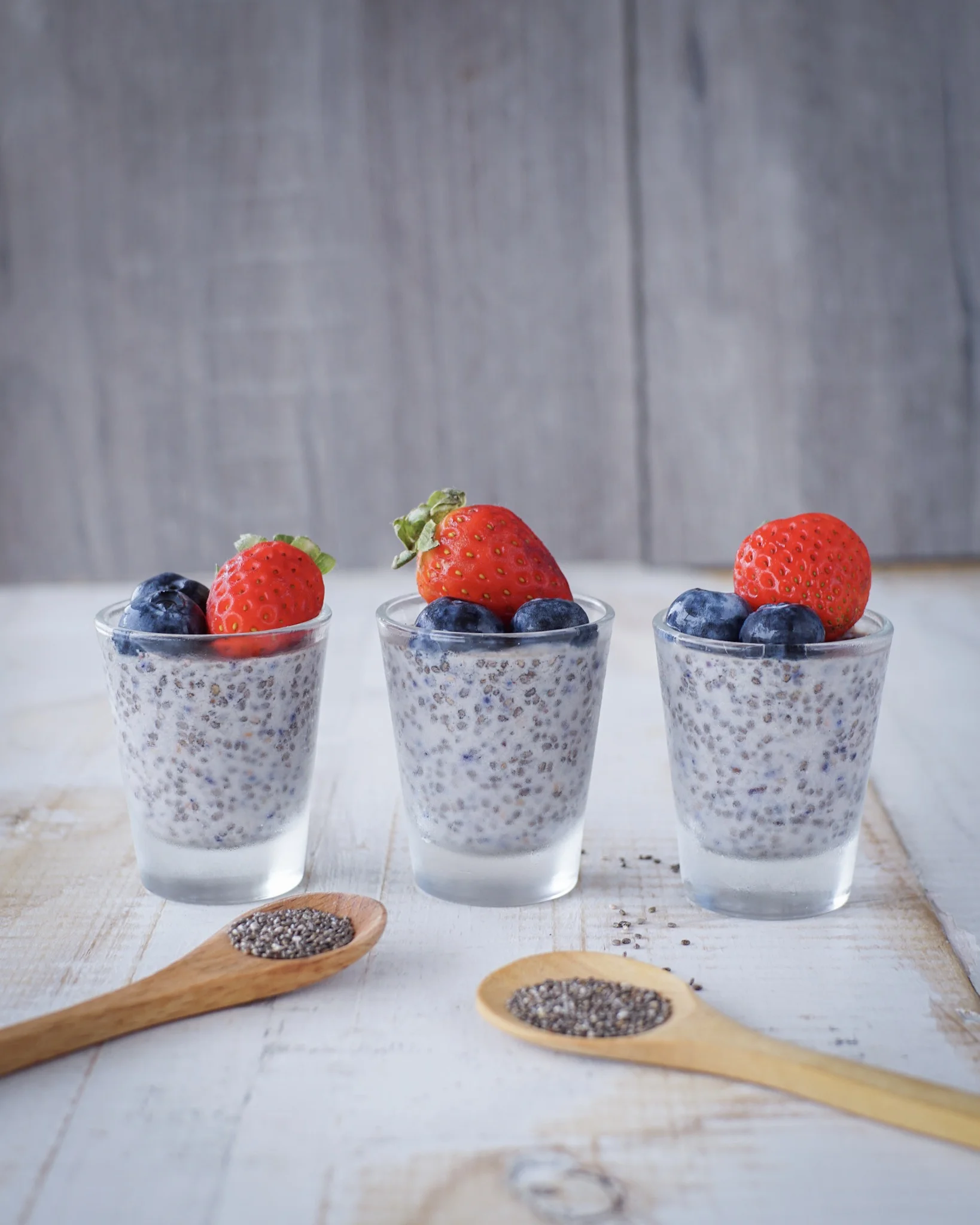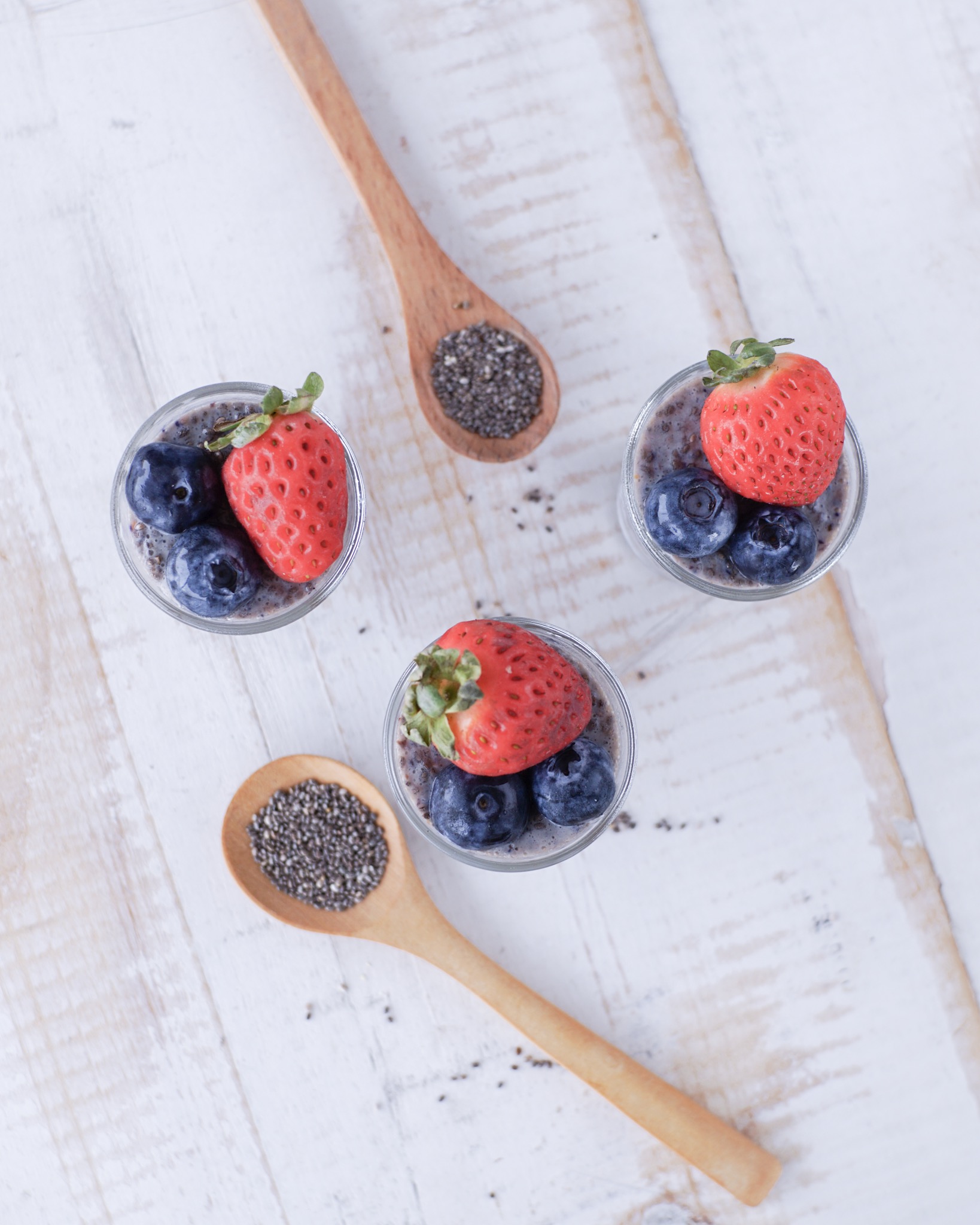 Procesar la bebida de soya con los berries y agregar stevia, mezclar con la Chía y porcionar. Dejar en el refrigerador de 4 a 6 horas para que tome la textura deseada, luego decorar y servir